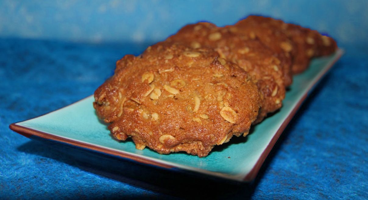 I’m starting to feel my British heritage coming out. We don’t have cookies in Australia, we have biscuits. The ones pictured are ANZAC (Australia, New Zealand Army Corps) biscuits. Legend has it that they were sent by wives to soldiers in WW1 because the ingredients did not spoil easily and they kept well during the long trip. Their simple ingredients include rolled oats, flour, coconut, sugar, butter, golden syrup and baking soda.