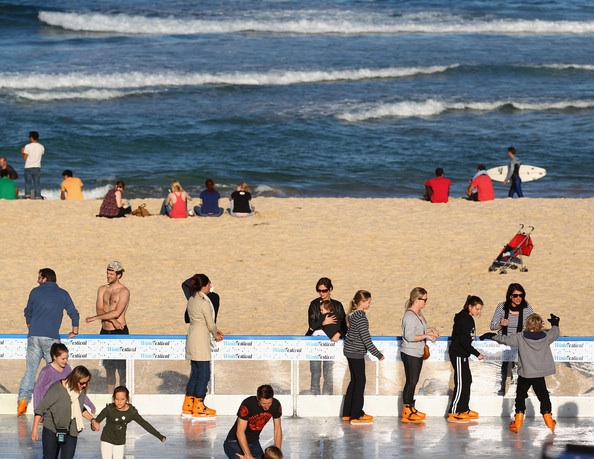 Last winter a rink was set up for the first time on Bondi beach – yes, actually on the beach!