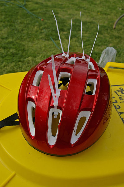 While it might look a bit strange, many cyclists put cable ties on their helmets, sticking out at all angles so that the magpie can’t get close enough to make contact with them.